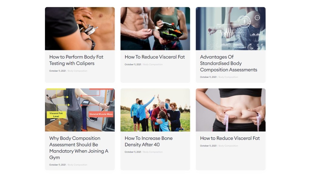 I was engaged to research and write a series of blog posts covering different aspects of physical fitness and nutrition. Topics covered including how to increase or maintain bone density, reducing visceral fat levels, and how body composition assessment works.